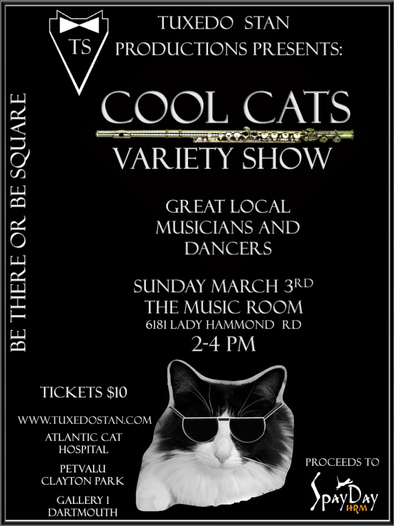 Tuxedo Stan proudly presents his first annual benefit concert for his favourite charity, Spay Day HRM.
