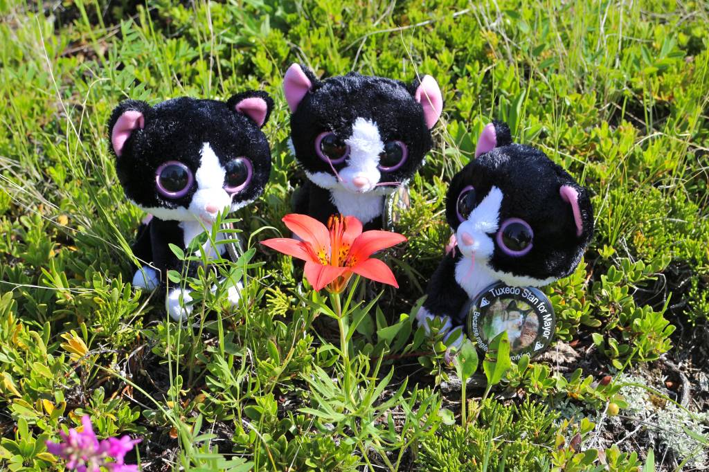 The bright splashes of orange in the fields turned out to be a kind of lily, admired by all three minions — Tony, Albert and Victoria.