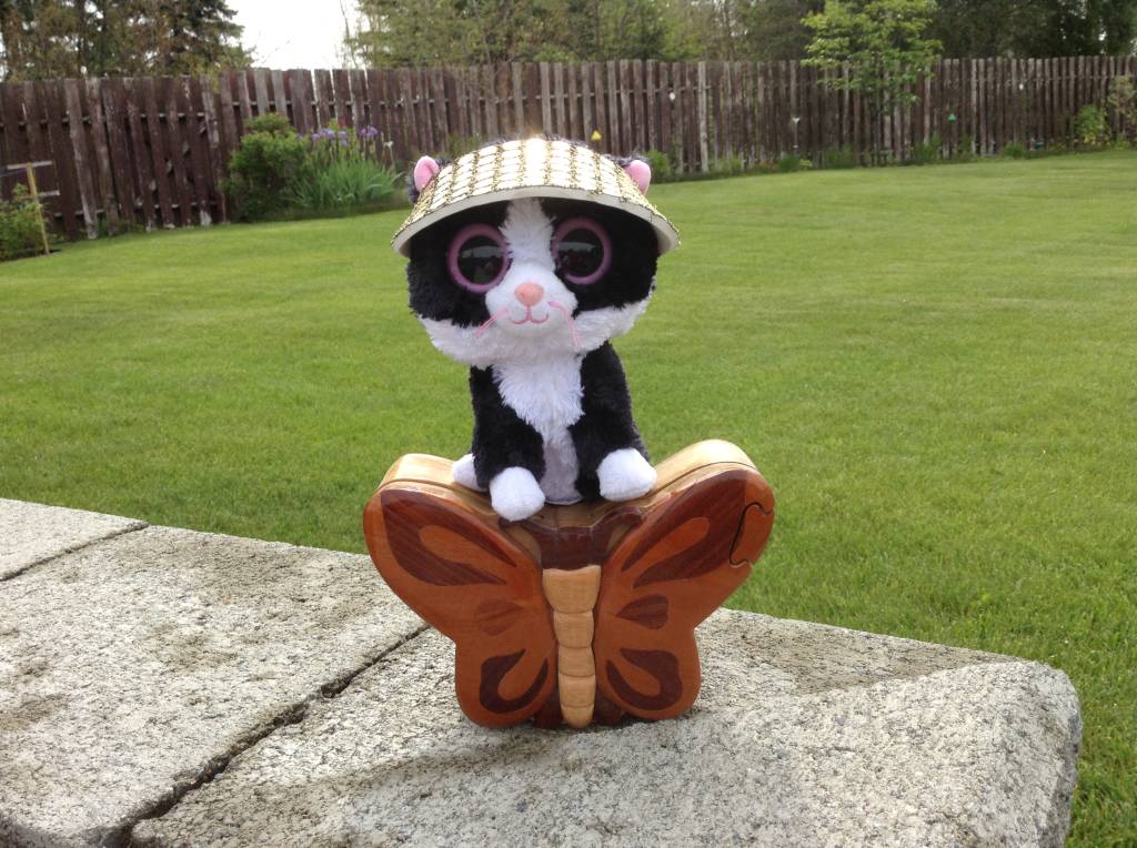 Minion Aggie admires my brick. She brought along my favourite toy – a catnip banana!