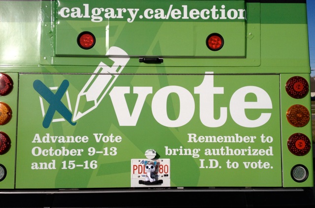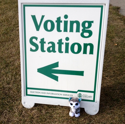 My friend Terry Keelan sent the following photos of Minion Spencer in Calgary Alberta. Spencer exercised his civic duty and voted in the city’s recent election.