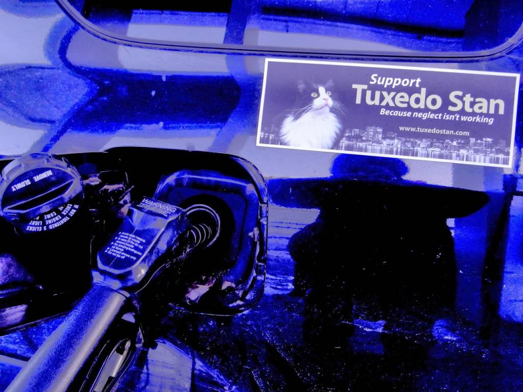 Put a tiger in your tank…said an old commercial. We put a tiger ON the tank as well – Tuxedo Stan bumper sticker graced the cat mobile for the entire trip on land and on water. (In the future will be removed only for car washes). Yesterday I saw some Santa Fe school kids standing near the car in the mall parking lot commenting on the beautiful cat. Unfortunately, they were too shy to pose for a picture ….I guess Earl Grey would understand that.