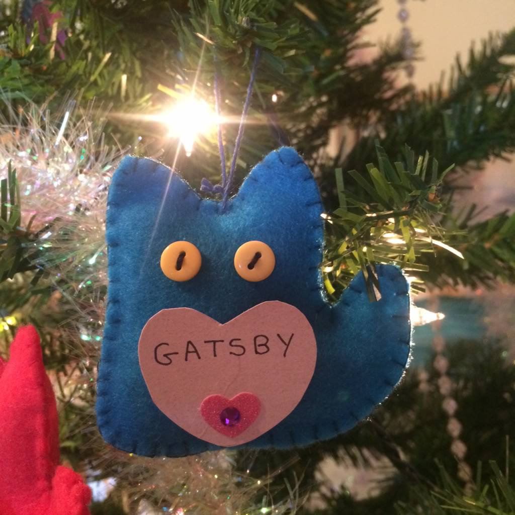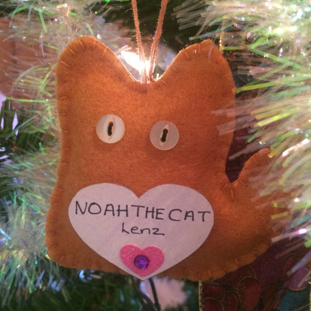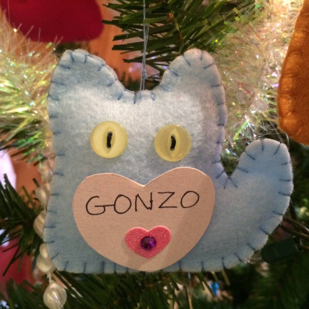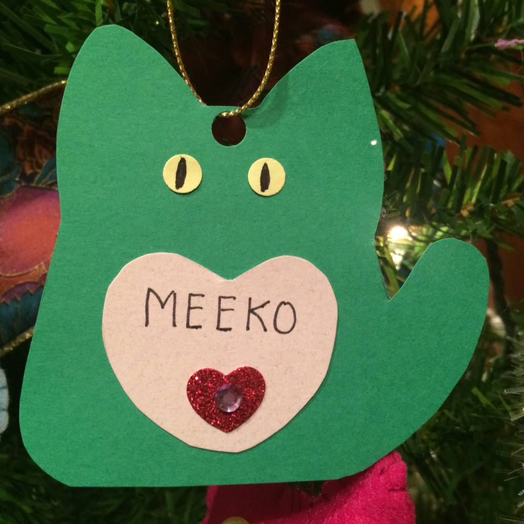 We decorate our tree with cat ornaments in memory of beloved pets so that everyone can share in his dream.