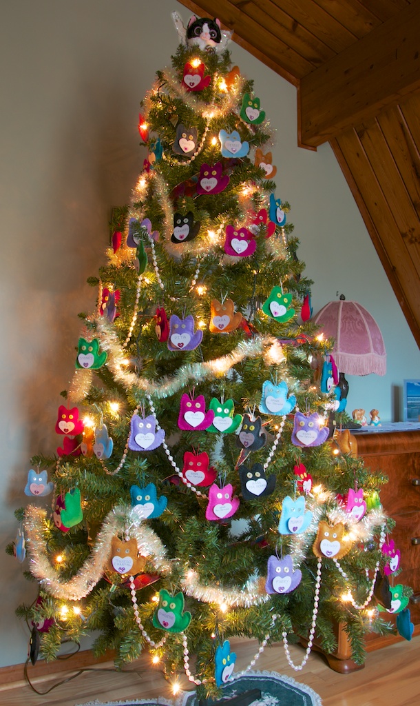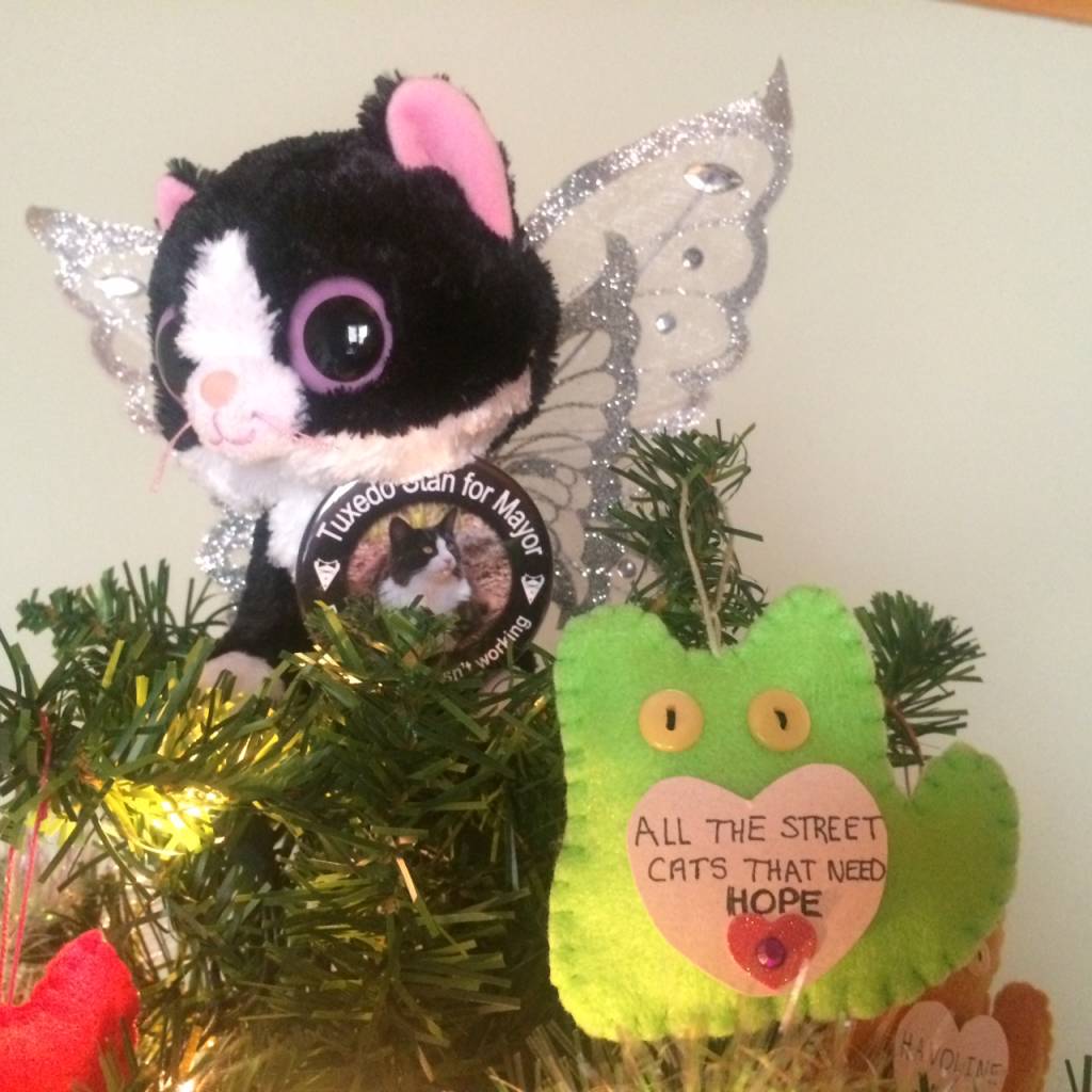 For a modest contribution of $5.00 in our online store we will hang a cat ornament on Tuxedo Stan’s Tree of Hope in honour of, or in memory of, your pet. Within 24 – 48 hours we will post a photo of your ornament on this blog (scroll down to see the photos).