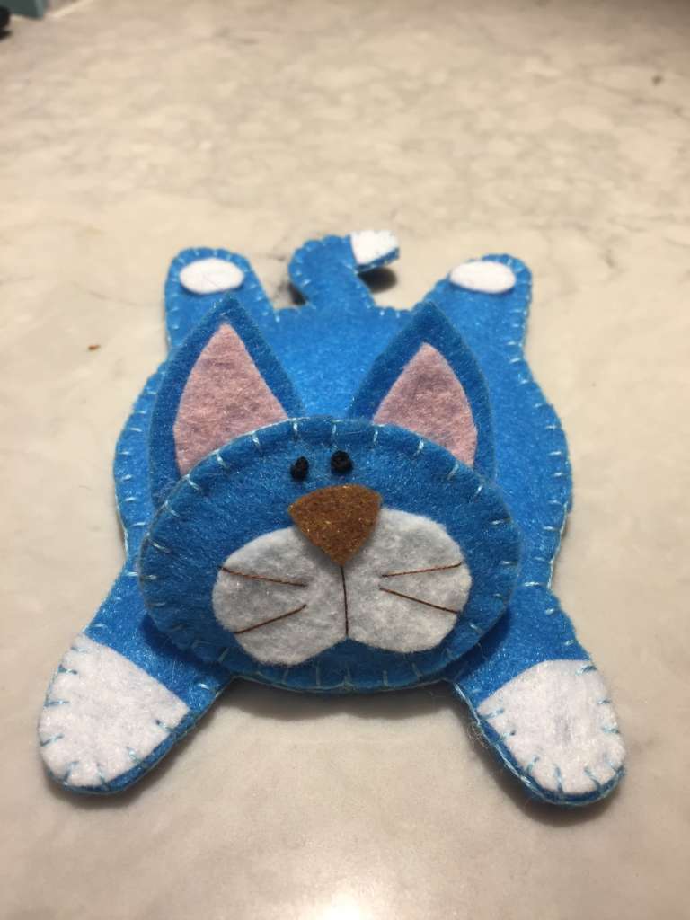 Too cute for words. I will be making a bunch of these for all of my feline loving friends for Christmas gifts. Can’t wait to get started. First I need to learn how to do a blanket stitch.