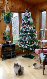 Earl Grey stands guard over Tuxedo Stan’s 2019 Tree of Hope