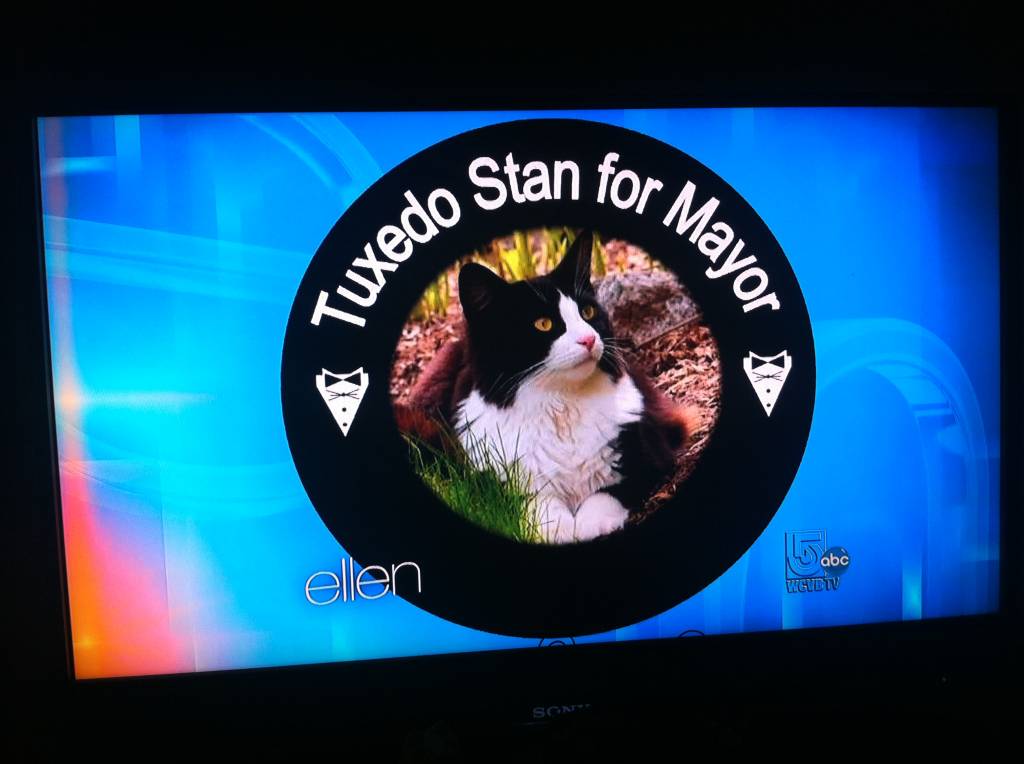 Ellen DeGeneres gave her endorsement to Tuxedo Stan during her opening monologue today. Ellen said: “I don’t like to get political but I would vote for that cat. I would” Watch the endorsement (via CBC.ca): http://www.cbc.ca/video/swf/UberPlayer.swf?state=sharevideo&clipId=2292021958&width=480&height=322 Click HERE if you are unable to view the video or to read the accompanying article.